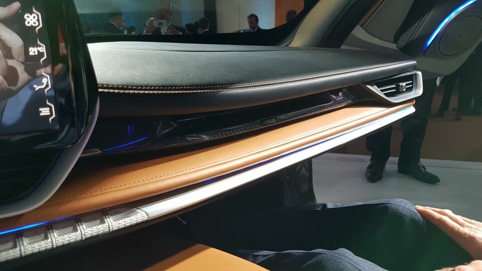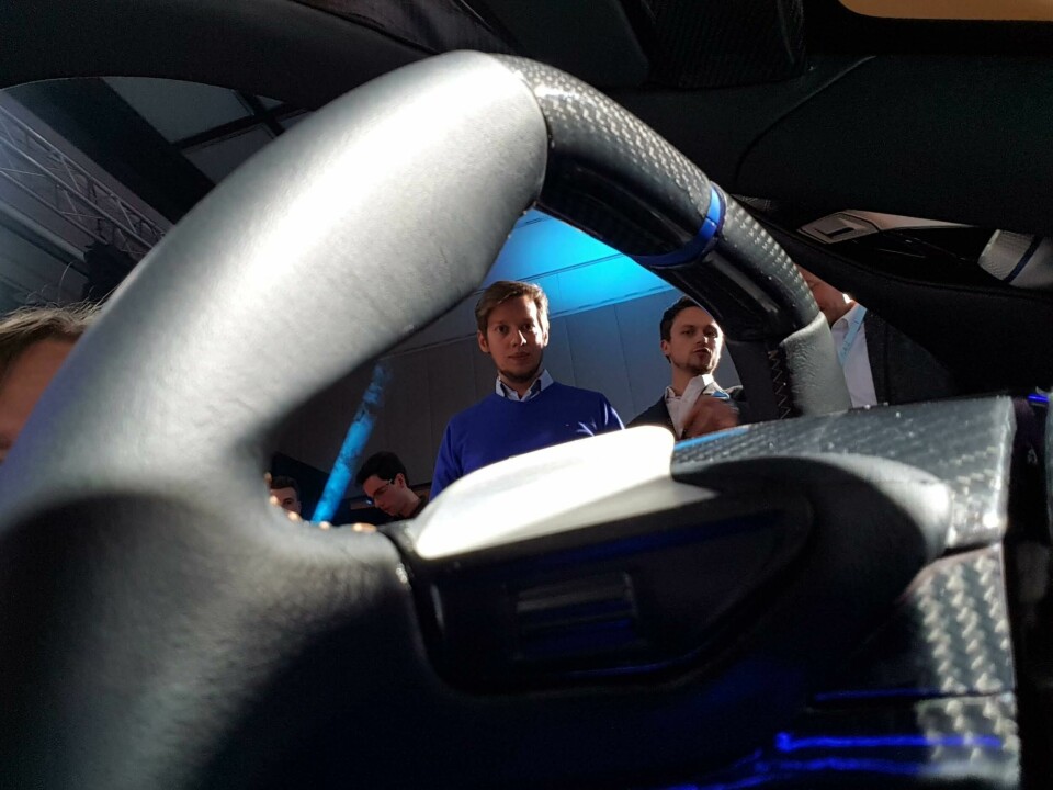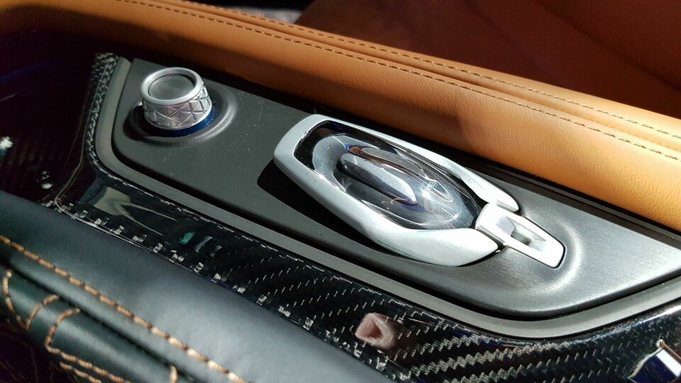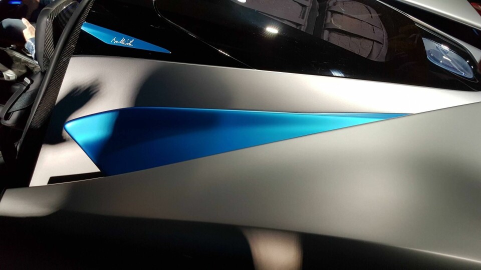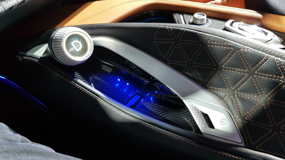 The interior features a very strong driver-focused theme. Whilst they couldn’t have gone the McLaren F1/Speedtail route of a central driver’s seat even if they wanted to, due to the T-shaped battery configuration (chosen over a skateboard platform to keep the car low-slung), the interior team have worked to create a contrast-coloured ‘driver zone’ which is absolutely symmetrical, right down to the minor trim pieces.