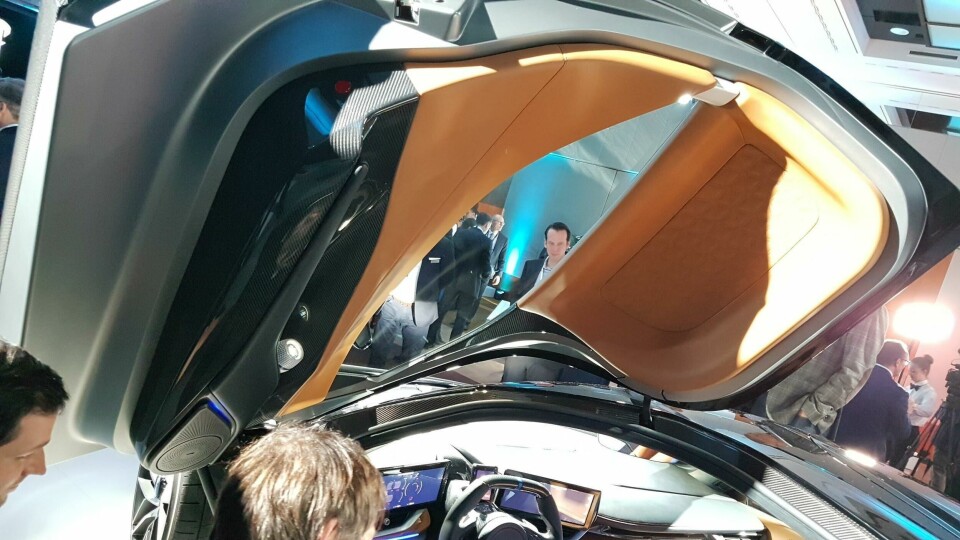 Ahead of the driver is an irregularly-shaped steering wheel, where the traditional stalks have been replaced with rotary switches nestled into the lateral spokes. Two large screens show the vehicle and media information, while a small central unit viewed through the steering wheel shows the speed and other vital info.