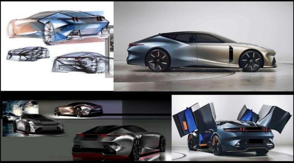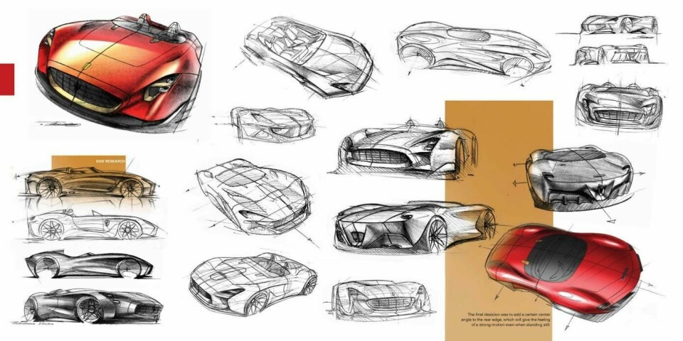 A freehand line drawing of a production or concept car that was built, demonstrating consummate skill and mastery of the craft.