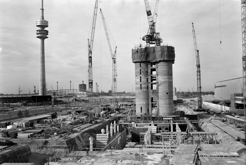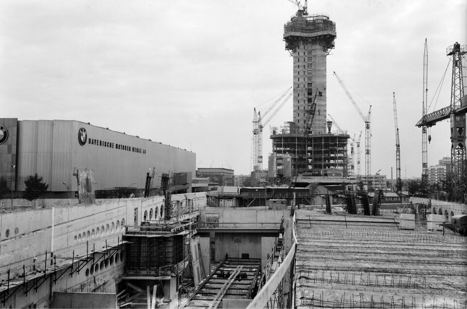 BMW reference materials explain that the four cylindrical elements were initially constructed at ground level, before being raised hydraulically and completed in several segments. Each cylinder was suspended from four giant “crane arms” positioned in the shape of a cross at the building’s central core. Many of the elements were pre-fabricated, saving time and money.