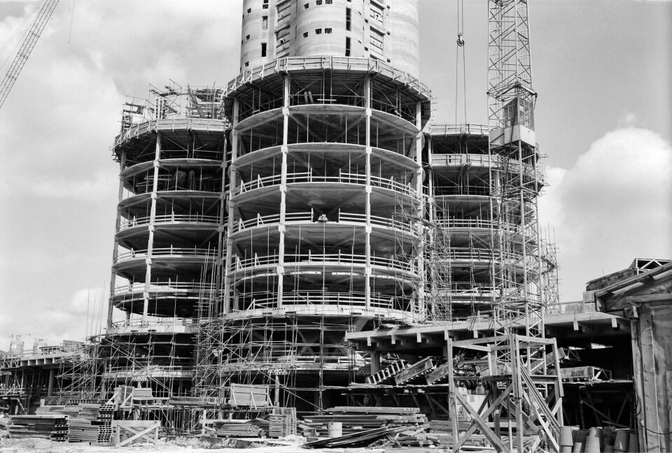 BMW executives put out bids for the new building and narrowed it down to two choices: A conventional “seven-storey high-rise block” and a proposal by Viennese architect Karl Schwanzer, an imposing, near-100-metre tower with four cylindrical elements that would appear to float, suspended from above. Not only was Schwanzer’s design head-turning, but, he asserted in his pitch meeting, the cloverleaf-shaped floorplan created open, circular office space that encouraged collaboration and reduced distraction, with the elevator banks (and therefore foot traffic) confined to the centre core.