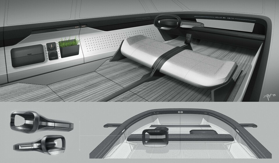 With the electric skateboard we are now past all of that. We can now open the automotive interior up to make one simple, minimalist room. We call it the urban loft on wheels; totally open totally spacious, totally clean. Give the customer what is needed – honestly, totally exposed, like pipes in a loft – and just take away the rest.”