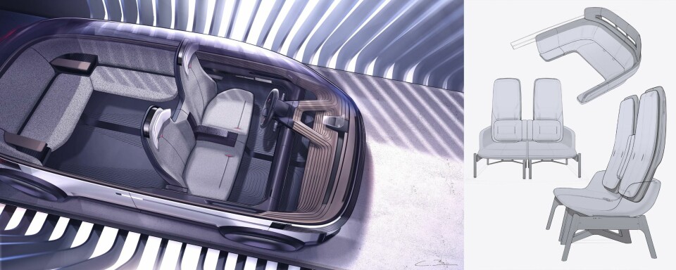 In current cars, every seat feels like its own compartment and when it is empty it feels like a waste of space. In our car, the loft idea allows for seating with a nice open space. Even the rear seat, so cramped and awkward in many vehicles, is designed like a sectional sofa. It creates a place for travelling, but also for hanging out and relaxing in a loft-like space.