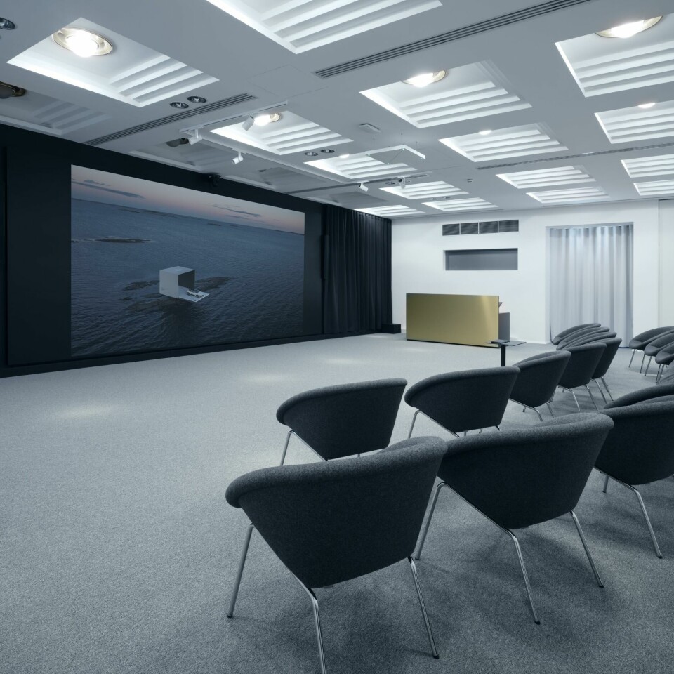 Beyond the imposing copper-clad front door lies a reception area that leads into a modestly-sized auditorium and VR room with a large LED wall for design reviews and other presentations. Also on this floor, a small former conference room serves as Missoni’s office, with floor-to-ceiling windows that look out onto a Japanese-style courtyard decorated with a simple rock sculpture.