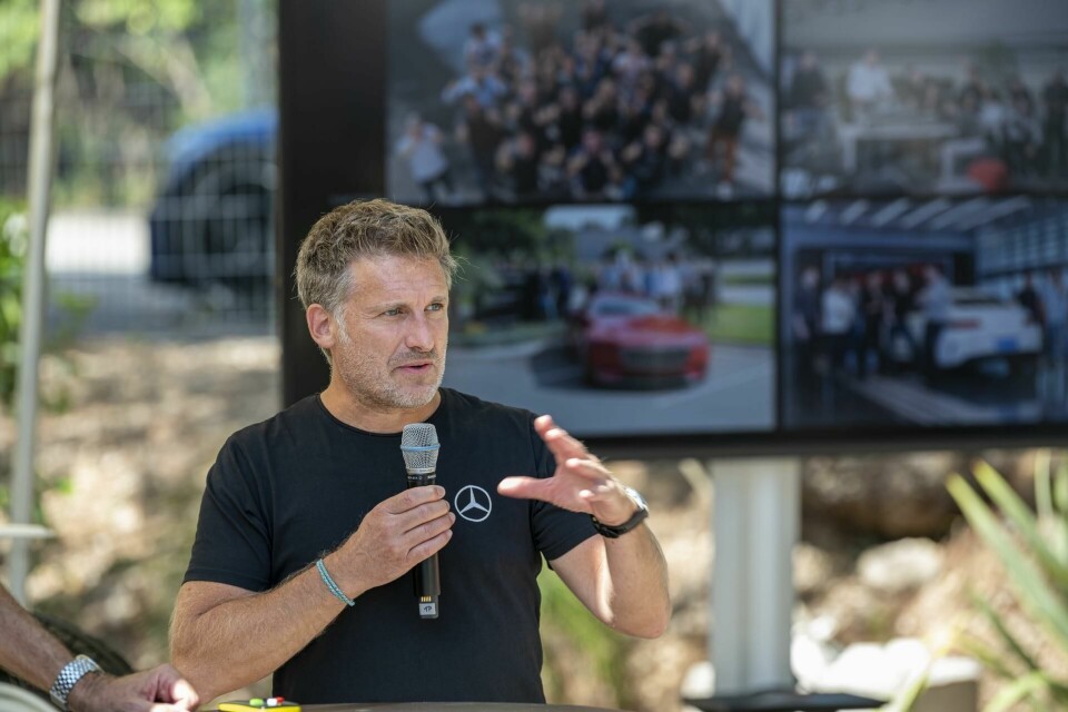 Wagener was positively beaming when he hosted the sun-kissed afternoon event – suggesting that Kohl’s aforementioned locational hunch was spot-on – and drove into the Studio’s car park in the historic 1902 Mercedes Simplex vehicle, before unveiling a 21st Century conceptual hommage to it in the shape of the 2019 Vision Simplex later that evening [see our separate story].