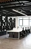 One of the biggest changes is the amount of space. The previous studio was rather cramped and there were two satellite studios. With the new site things can be far more concentrated, and only one of the satellites still remains. The exteriors building fits in a six-metre display screen for viewing, whereas interiors has a five-metre unit. Upstairs in building B is a large space allowing designers to curate presentations. Continuing on a theme from the old premises, all the meeting rooms get names taken from Journey to the West – a Chinese classic which tells a fictionalised account of the adventures of Buddhist monk Xuan Zang and his journey to India to collect Buddhist scriptures. Quite apt for a company that is keen to take its cars to the world.