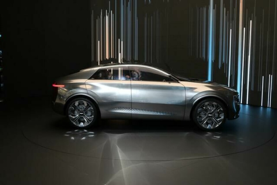 With little in the way of colour pops, this interior could easily have been like stepping into your grandma’s beige sitting room. Yet while the colour way is definitely an acquired taste, the masterful handling of surfaces and volumes – which are slimmed down, elegant and crisp – lend a sense of modernity. There’s an emphasis on space and Imagine highlights the possibilities an EV package allows. The fact that it doesn’t all feel like a sea of sameyness, despite the muted colour palette, is achieved by using contrasting materials and textures – the light-coloured textile lower doors, the sea-shell like fans of the seat backs, and the delicate, linear silk of the seat bases.