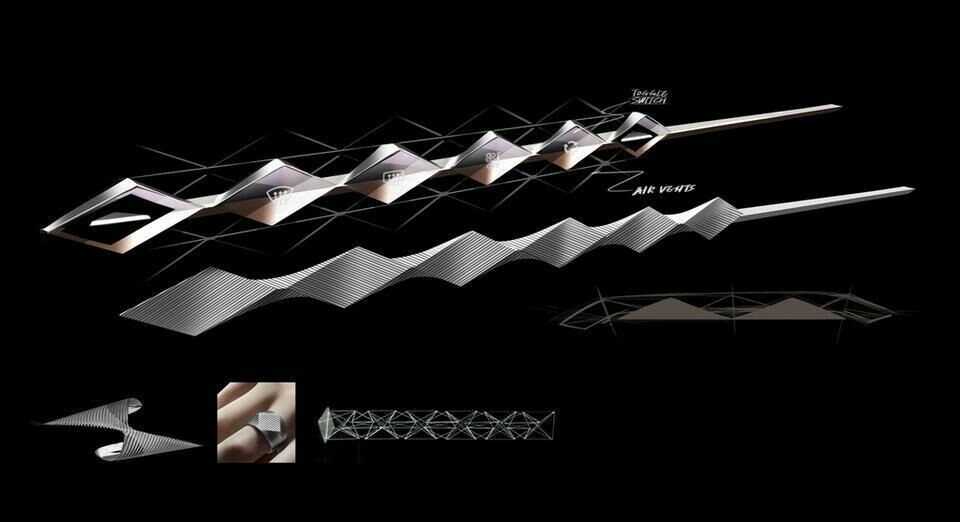 “We wanted to give it this soft feeling, like a cocoon – a good ambiance. When you are in your car it should be restful, so we do not want an aggressive interior,” he says. Perhaps the defining feature is the silver blade that sits just below the main screen. Forming a unifying link between the dash, console and the door, the blade incorporates climate controls such as windscreen heaters, air-conditioning for easy use while driving. Made from a chrome the colour and trim team say was specifically developed for the DS 4, it doubles as an air vent operating a little like a tail fin on an aeroplane to direct the air. The length of the blade increased with each mock-up – the drawback of integrating the vents into the doors meant that when opened the dashboard looked disproportionately short so a visual counterbalance was needed. Ditto, the dashboard itself – a sweeping dark curve that seamlessly accommodates the main screen.
