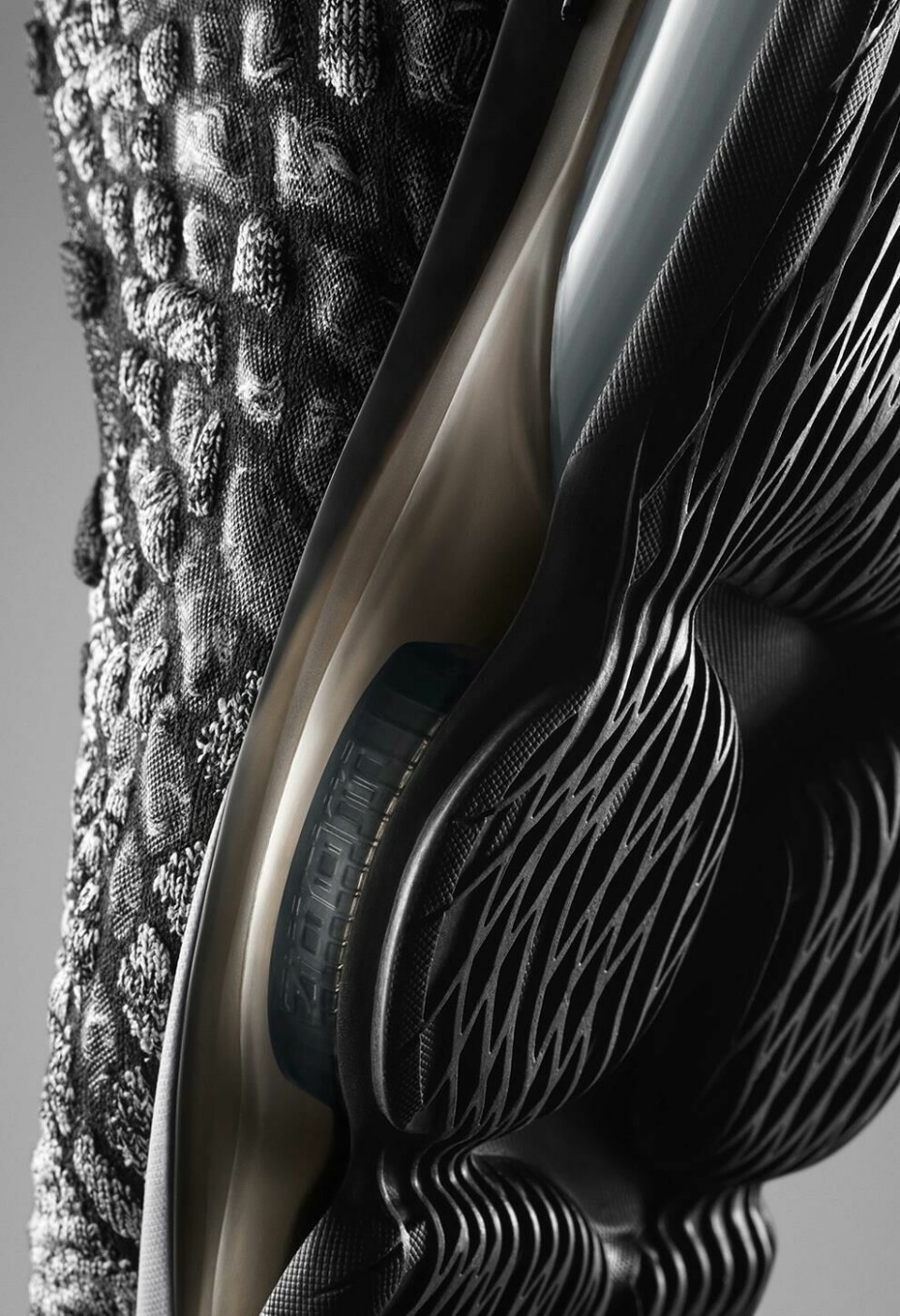 The sportswear industry has spearheaded a revolutionary shift in textiles to 3D knitting and Knitposites. One new technique applies heat in the knitting process to create a jewel-like armoured exoskeleton which is both structural and soft in certain areas as required. The combination of lightweight flyknit construction with heat-moulded yarns allows the addition of structure and colour. The result is a durable, supportive and stretch-resistant surface. Designers can experiment more freely, trying ‘fit to form’ concepts with much more complex fabrics. Growing awareness of the need to develop more sustainable fabrics is driving the use of plastic ocean waste, recycled fibres, or simply more natural fibres. Such possibilities bring renewed interest in environmentally responsible alternative textiles with premium and high-tech appeal. Industries not commonly known for their innovative use of fabrics are starting to embrace these for their limitless graphic opportunities, tactility and visual differentiation.
