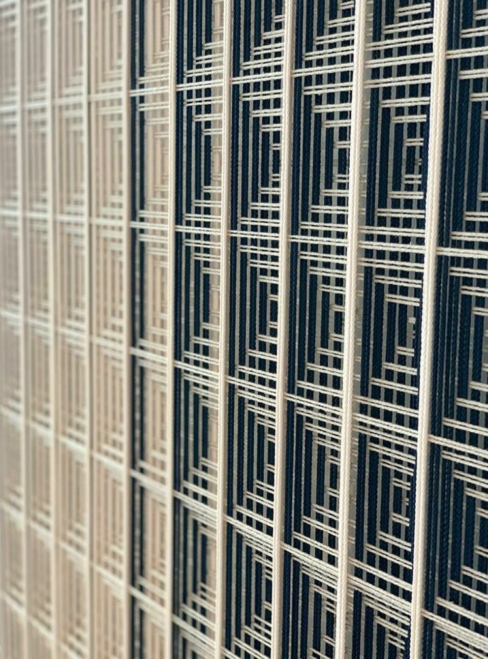 Linescapes: The textile art studio Fault Lines, founded by Matthias de Vogel in 2015, experiments with traditional ideas of textile art and reinterprets them in a new way. Linescapes are handwoven panels of tactile depth, with bold graphics in grids and geometric structures. These compositions are inspired by the beauty and richness of weaving techniques from craftspeople in India, Morocco, Turkey, New Mexico, Japan and Scandinavia.