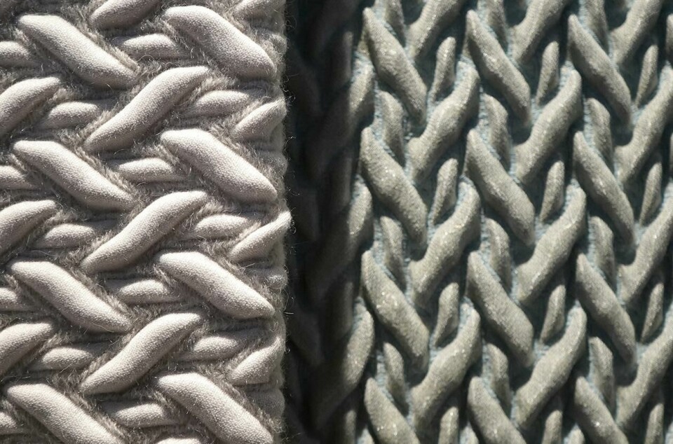 Comfort zones: Maria Wolff Metternich has explored both physical and emotional comfort/discomfort: a variety of Comfort Zones deal with the delicate relationship between filling material and cover, to form knitted structures and materials and appear soothing and comfortable. The elasticity of the knit shows graphically over the volumes in a decorative way in, for example, furniture applications.