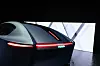 Moving outside the model, the innovation continues with the exterior lighting. The tail lamps appear as solid bars of red light with no exterior lens, and zero variation in brightness. This development is in response to customer requests for clean, homogeneous illumination. The result is quite elegant: the rear central badge can change to a bright cyan, signaling to other drivers that the car is in an automated driving mode (we are told this will be the agreed-upon way to indicate such a condition, industry-wide).