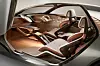 Five passenger modes can be selected: Enhance, heightening the external light, sound, smell and air quality; Cocoon, with opaque glass areas and air purification; Capture, to record the experiences; Re-Live, to replay them; and Customise, combining elements of all the above. The air purification system is housed in the trunk; and vents on the rear passenger shelf and front passenger panel undulate for a breathing-like effect. A bespoke scent has been created for the car by fragrance house 12.29, with notes of sandalwood and fresh moss.