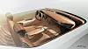 The Mint is designed for Level 3 or 4, rather than full, autonomy, so the driver still needs to focus on the driving functions, and to view key data or information. The oblong steering wheel is complemented by six small, copper-rimmed circular screens, three each side and each devoted to specific communications. A further screen is mounted in the centre of the wheel to display primary vehicle information, and a large central control knob is housed in the folding console.