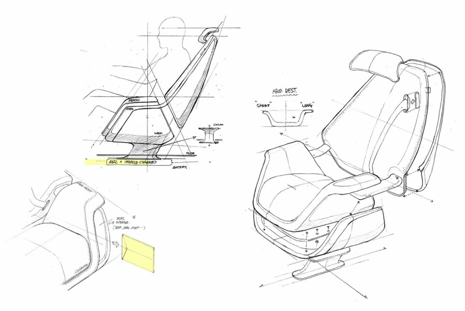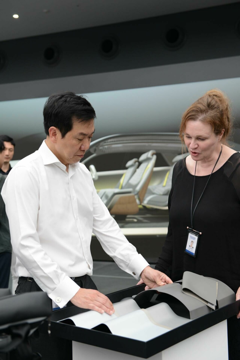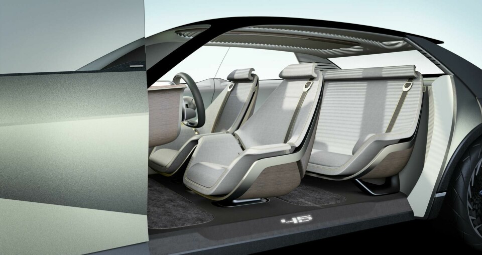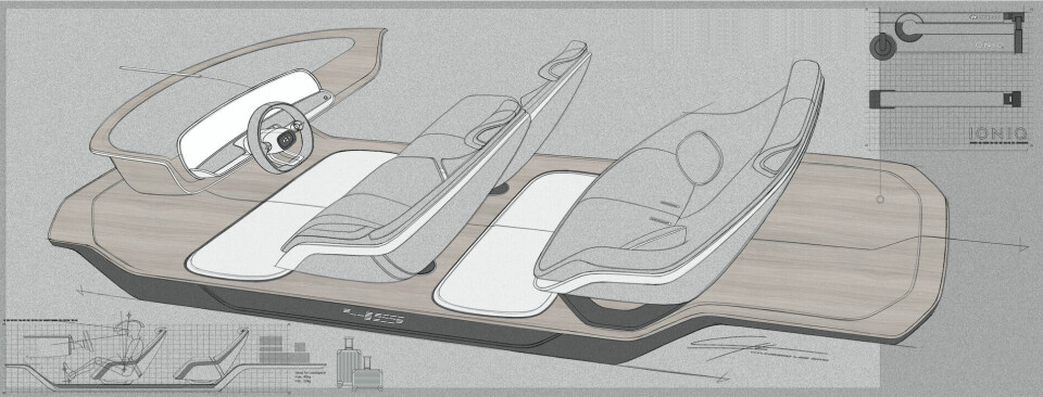 Two themes based on the theme of ‘living space’ were developed: both took furniture, rather than conventional automotive interior components, as the main inspiration for forms, materials and details. The chosen design, however, went further in terms of how the furniture “seemed to be placed in space, rather than in a vehicle”, says SangYup Lee. “We approached ‘living space’ as a main concept of spatial composition, not just as a stylistic motif.”