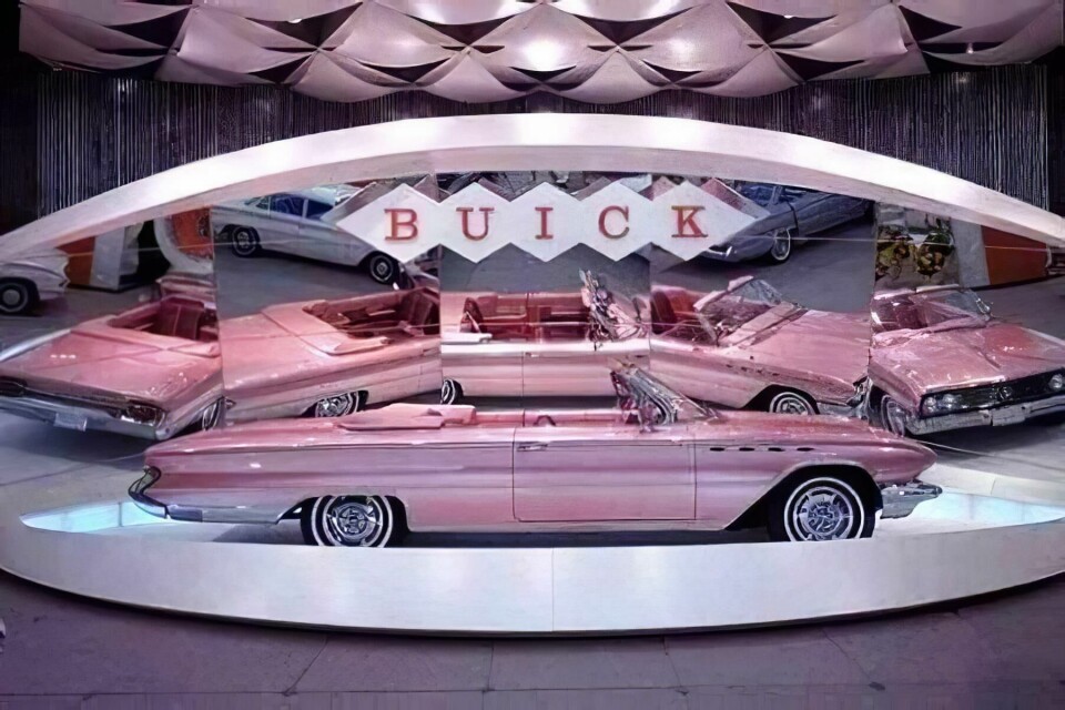 A Buick concept, the Flamingo, from 1961, took the concept further, with a passenger seat that swiveled a full 180 degrees, allowing the interior of the car to be more of a social space. The car, painted a then-new pearlescent pink, shimmered both on the show floor and out on the road. The interior was also a striking pink, with pink leather and cranberry brocade on the seats and door cards. It was a car to be seen and be seen in, with luxury and style, perfect for the “Camelot” of the Kennedy years in the US.