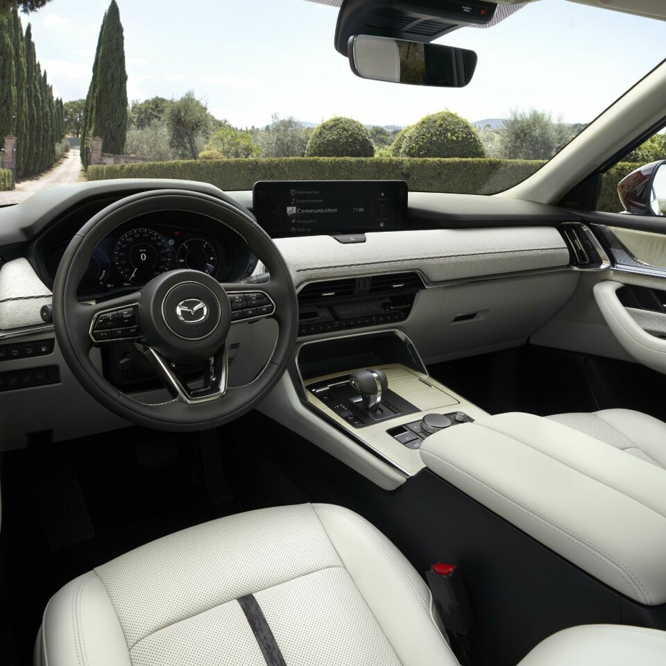 The wide instrument panel accentuates the feeling of space and the modern essential of the touchscreen is neatly integrated into the upper panel of the IP rather than dominating it. As with other Mazda models, the idea is that screens distract from the joy of driving, so essential information is visible in the 12.3-inch instrumentation screen and a head-up display, while the 12.3-inch touchscreen is almost secondary.