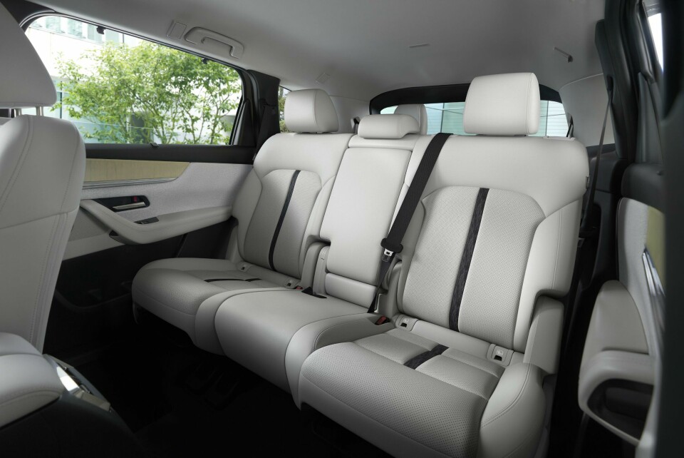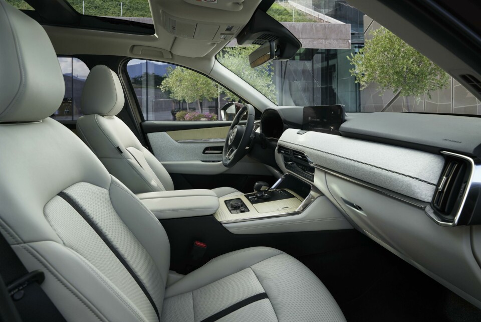 Here there’s something about the body above the belt line that echoes the classy elegance of an estate car. It’s a beautiful style that contradicts the common belief that it is difficult to design a good-looking SUV. The wheelbase is 250mm longer than the CX-60 with which it shares a platfom, allowing for a third row of seats but also contributing significantly to that elegance.
