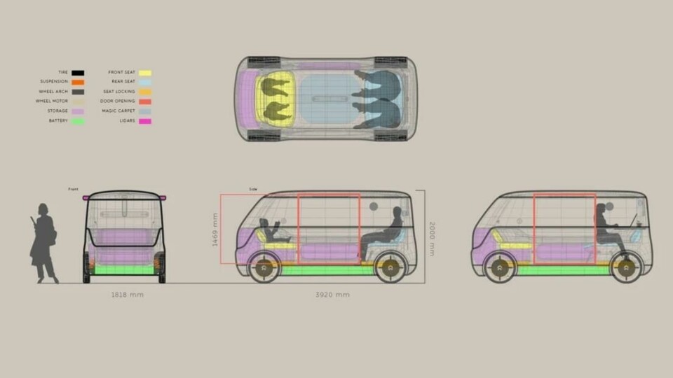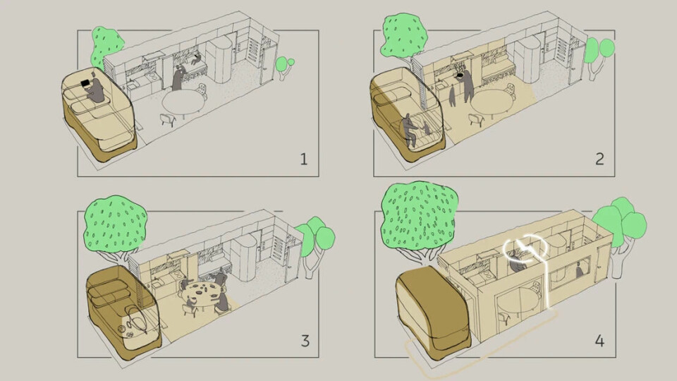 First up, Christoffer Weinreich partnered with Nio for his project, a shared family vehicle that integrates itself within part of the home. A Copenhagen native, Weinreich drew on his personal experience with urbanisation. “When space in the city becomes a bit tight, the car could become a new area in which to expand,” he explains. This small EV called ‘Homi’ (prounced homey) draws its name from Nio’s AI assistant, Nomi, and is equal parts car and living space. “Home is your Homi,” he jokes. His supporting artwork also highlights the focus on interior design, with wooden slats in the living room mirrored in the roofline and elsewhere in the car.