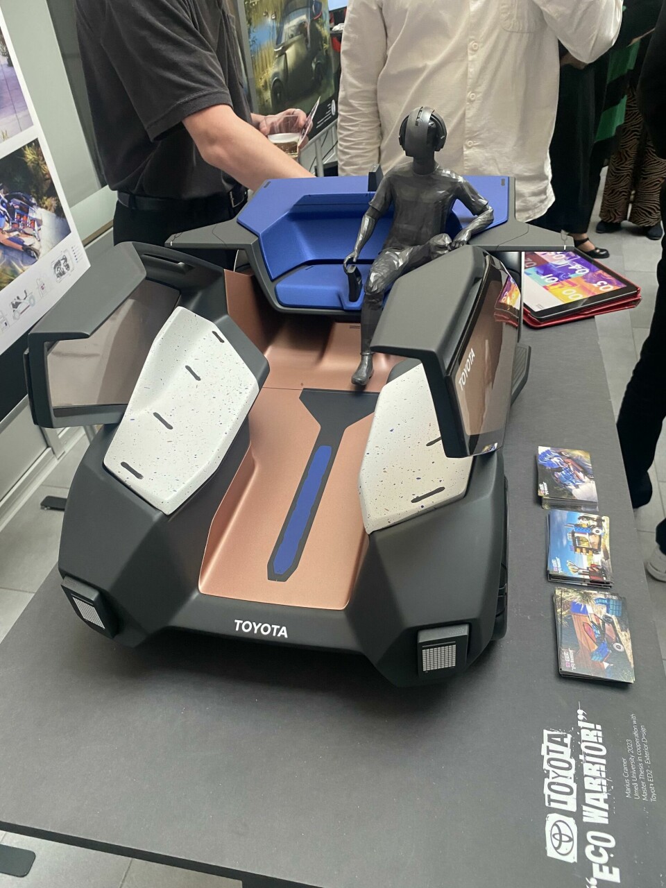 Markus Cramer partnered with Toyota for his project, the Eco Warrior, which is inspired by rural self-sustained village communities. “These are people who have very different mobility needs inside and outside of the village,” Cramer says. Visually, he describes the buggy as “reduced to the max” and explains that the original ideation was much busier; visitors to the exhibition seemed to respect this way of thinking.
