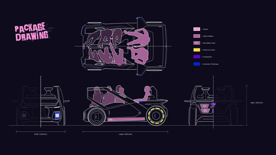 The Eco Warrior could be used to transport home-grown fruit and veg between villages, carry heavy goods or to collect friends from around the village, using the front and back seats in an arrangement that flips the traditional “driver at the front” approach. Instead, the steering wheel sits at the back – almost like a hovercraft layout. “I wanted to put empty space to better use,” he told CDN. (Scroll across to see a close-up of the scale model below).