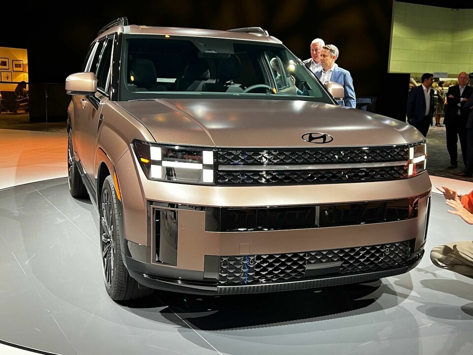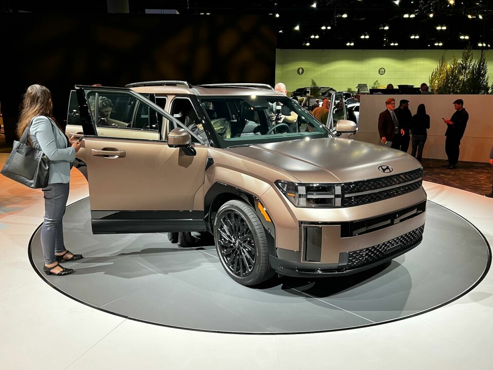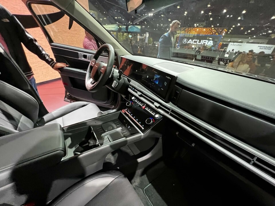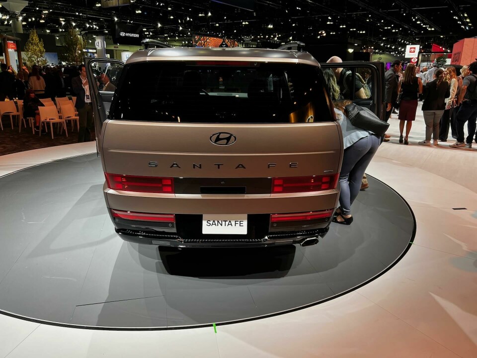 The styling relies on a blocky rectangular look inside and out. We had hoped that seeing the car in the metal would reinforce the good look of the press photos, and indeed, that is the case. We were pleased with how it looks and feels in our walkarounds, lots of ‘H’ elements and rectangles, but not done to the extreme. And the ‘chunkiness’ of the massing is greatly relieved by its length. And, yes, the chunky Santa Fe has been tuned in the wind tunnel to a Cd of 0.29.