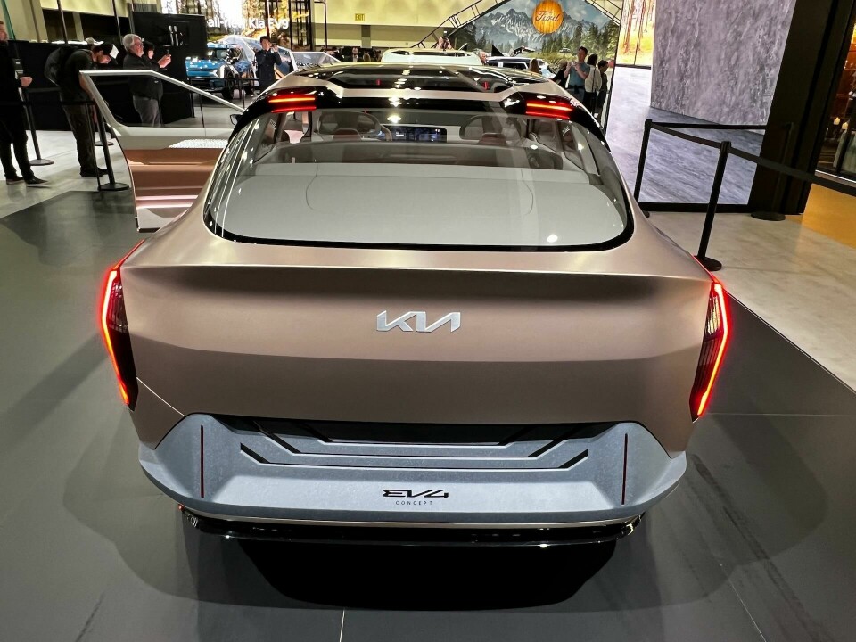 The EV4 is a rakish mid-size sedan with sporty design cues. From certain angles, it looks like a more futuristic version of the EV6. There’s some EV9 influence here, too. From some angles, the EV4 looks a little unwieldy, with awkward juxtapositions of angles, chamfer, bulges and other elements. At other angles it seems just fine – a little challenging to contemporary eyes, but isn’t that what an emissary from the future is for, to broaden our perspective?