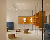 All this aims to create an environment that is conducive to exploration, getting hands-on with the material and not simply observing from a distance. The display and sampling zones are supported with a bathroom and pantry, which tie in nicely with the rest of the showroom's aesthetic.