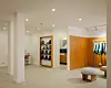 A large internal window in the main warehouse wall connects the more casual, contemplative meeting area with the hustle and bustle of the stockroom, sparking curiosity and experimentation with sewing equipment — which is encouraged as part of a visit.