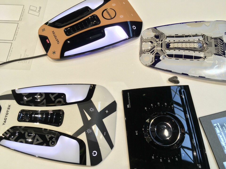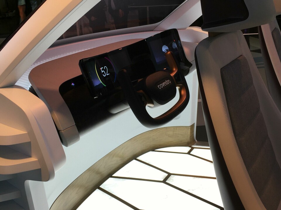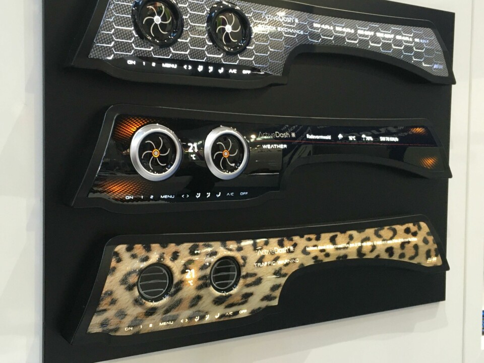 The “very pure and slim” design theme was created for Covestro by Miika Heikkinen of Northern Works, Turku, Finland, to highlight the materials. Most notable is the large, curved polycarbonate display, integrating two screens; along with active screens in the windows and smart surfaces, this reduces the bulk of an IP. Created with partners including Continental and Kurz, its cover plate of Covestro’s Makrolon Ai polycarbonate and Makrofol foil offers excellent screen resolution and is claimed to be very strong. Similar materials are used in the overhead control panel, developed with Tactotek, which features embedded LEDs and Makrolon resin between two films. “We inject the resin materials, put the films together, and use Makrolon to get stiffness and transparency for the light guides,” explained project manager Jan Helmig. “It’s extremely thin.” Such polycarbonate films can further contain printed electronics.