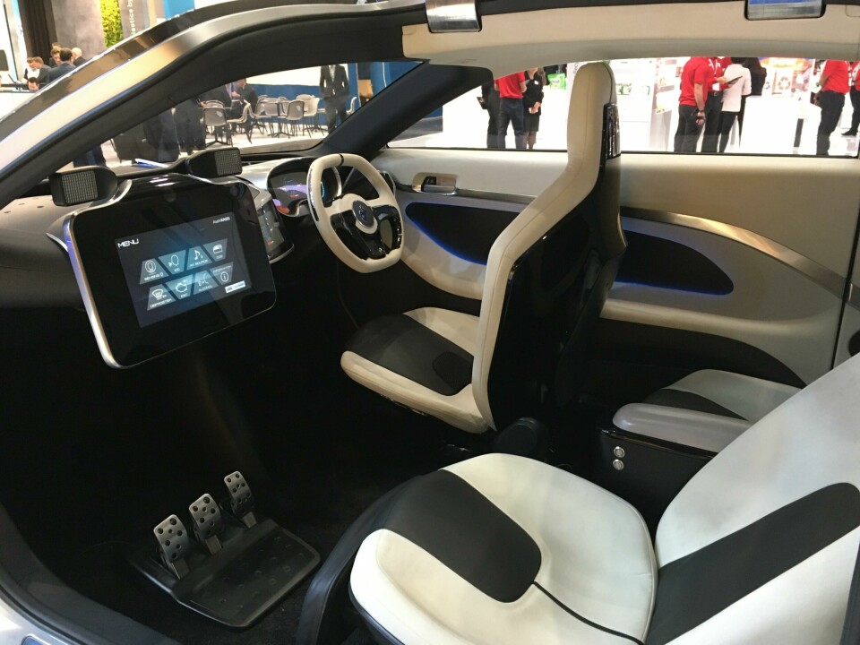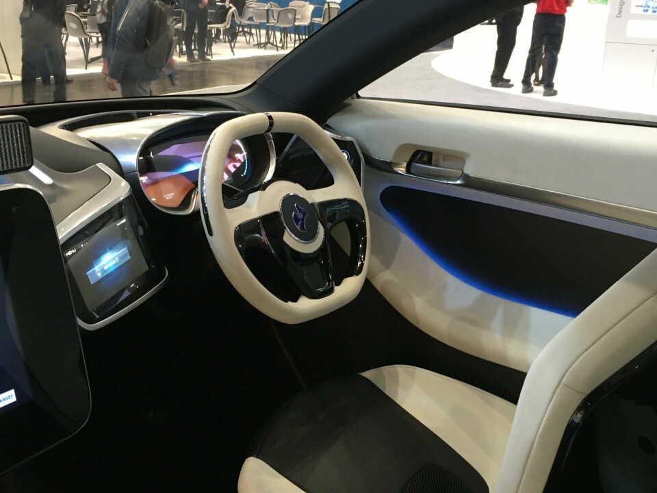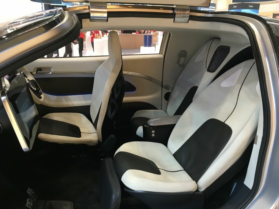 The concept’s seats showcase a polycarbonate composite called Maezio. “We thought how to make a lightweight and stable structure out of our materials: coatings from our raw materials, and then the whole shell out of our carbon composite, in a sandwich structure,” said Helmig. “It also gives a very good surface quality; you can paint it very easily.” Over the centre structure and foam, a water-based (non-solvent) textile coating called Insqin is applied for an artificial leather effect. “This is translucent; you can highlight the seat, create textures and also some kind of branding,” Helmig adds.