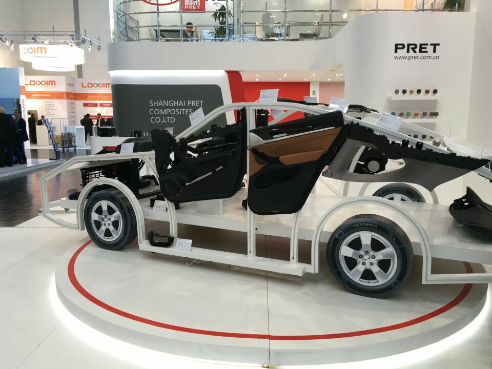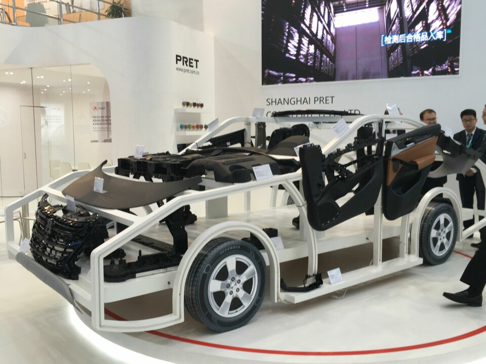 Of the whole vehicles seen, Sekisui Plastics – supplier to Japanese OEMs for components such as toolboxes and spare wheel housings – had a special-edition Honda S660 NeoClassic on its stand, featuring a body kit made from its foams and materials; BASF displayed the Hymer VisionVenture camper van to which it contributed interior materials and a cooling-effect paint; and Borealis and Borouge had a Nio ES8 featuring their Fibremod (plastic reinforced by second-life carbonfibre) and Daplen (recycled polyolefin) materials.