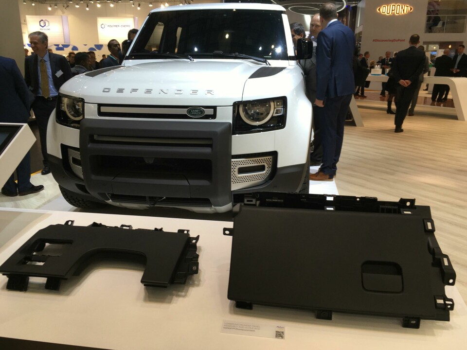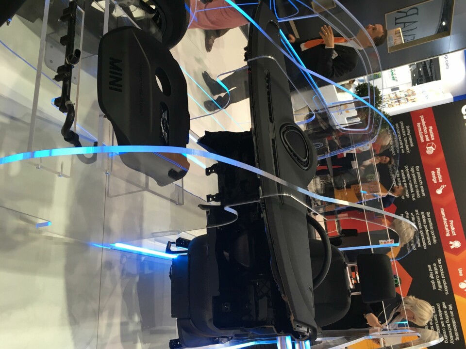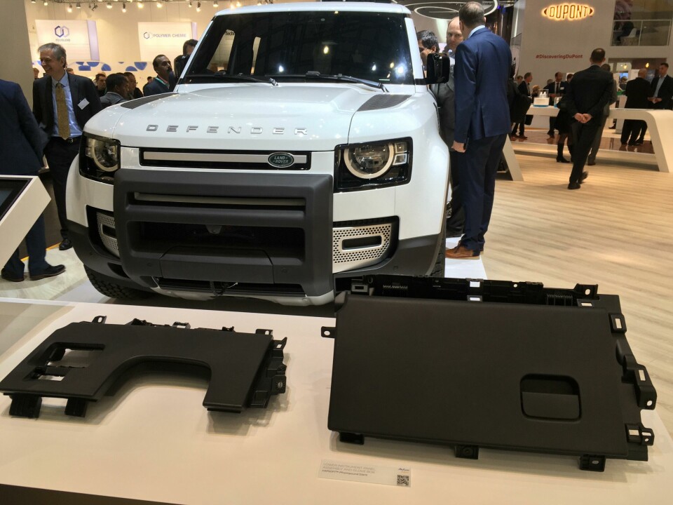 Chemical foaming was also seen at Pret, whose wireframe model claimed weight reductions of up to 25% in door panels, as well as blended materials saving up to 45% of weight in air vent housings and areas such as dash panels; and similar models from the likes of LG Chem and Cabot pinpointed their areas of innovation. Plastics giant Dow – supplier for components including the Range Rover Evoque’s tailgate and BMW fascias – showed seats and IPs with thinner and lighter foams, as well as promising low odours and low emissions of volatile organic compounds (VOCs). Sabic had the new Land Rover Defender on its stand, featuring its materials for the lower IP assembly and glovebox. Bplas lined up Ford fenders to show off its coatings and 3D prototyping skills. Suppliers including Merck and Architexture showed printed dash surfaces, foils and artificial leathers giving 3D effects. Proseat, supplier of seat foams and surfaces to clients including the VW Group, claimed materials with low weight, high stiffness and good ventilation properties, combining foam and EPP (expanded polypropylene).