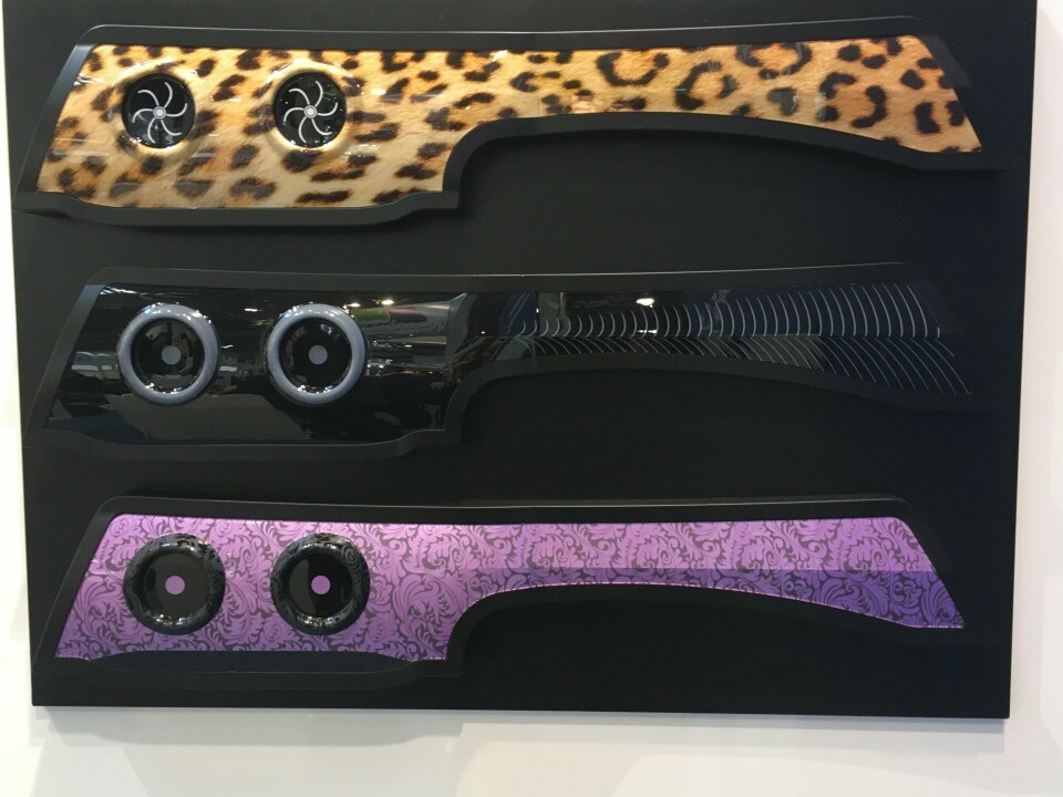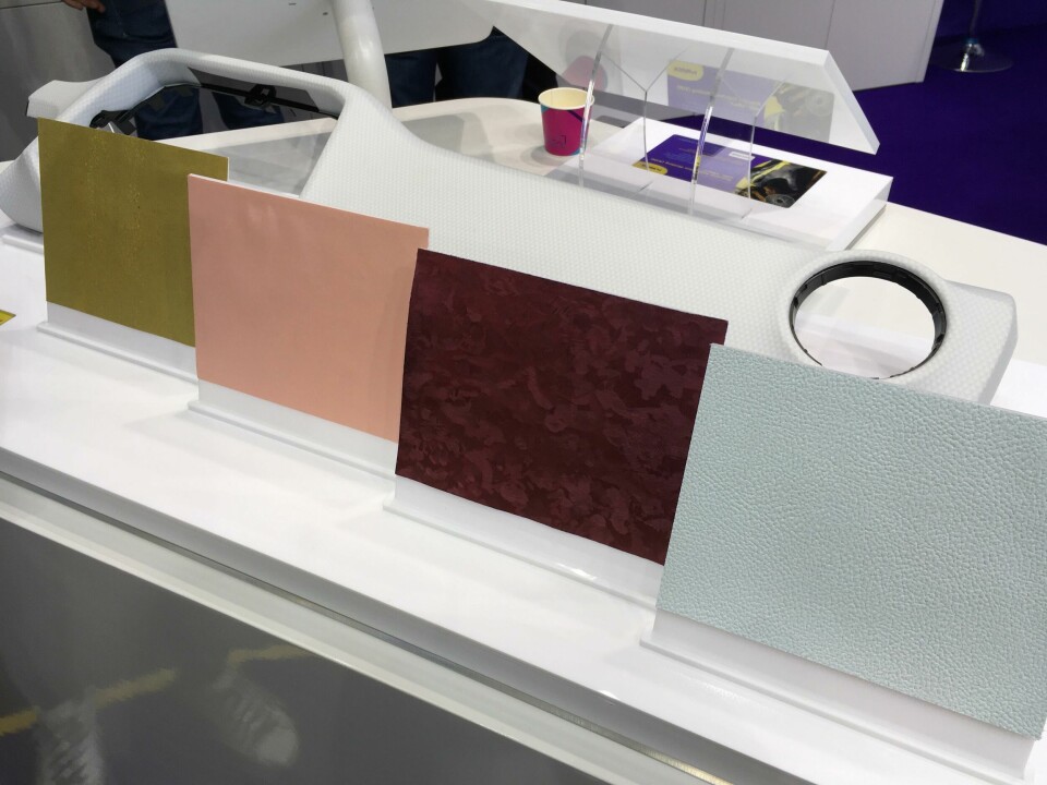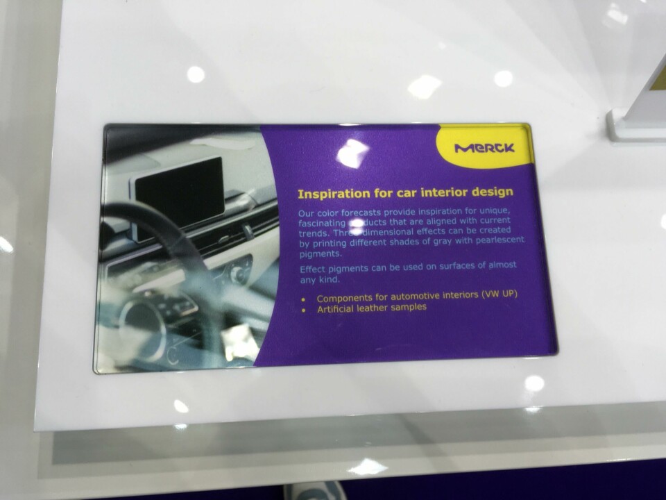 Deco panels and fascias were in abundance; Kurz claimed “design for recycling” with its IMD Pur surfaces, where an injection-moulded part is decorated with an in-mould design and covered with polyurethane. This process can produce surfaces allowing LiDAR or radar beams to pass through, as well as backlighting, and supports a ‘self-healing’ scratch-resistant topcoat; complex patterns from silk-screen printing can be incorporated. Films, coatings, high-gloss surfaces and other treatments, as well as specific coatings for LEDs and lighting applications, were further seen at suppliers including BÖ LA, Pröll, Eckart, Oerlikon Balzers and Arkema.