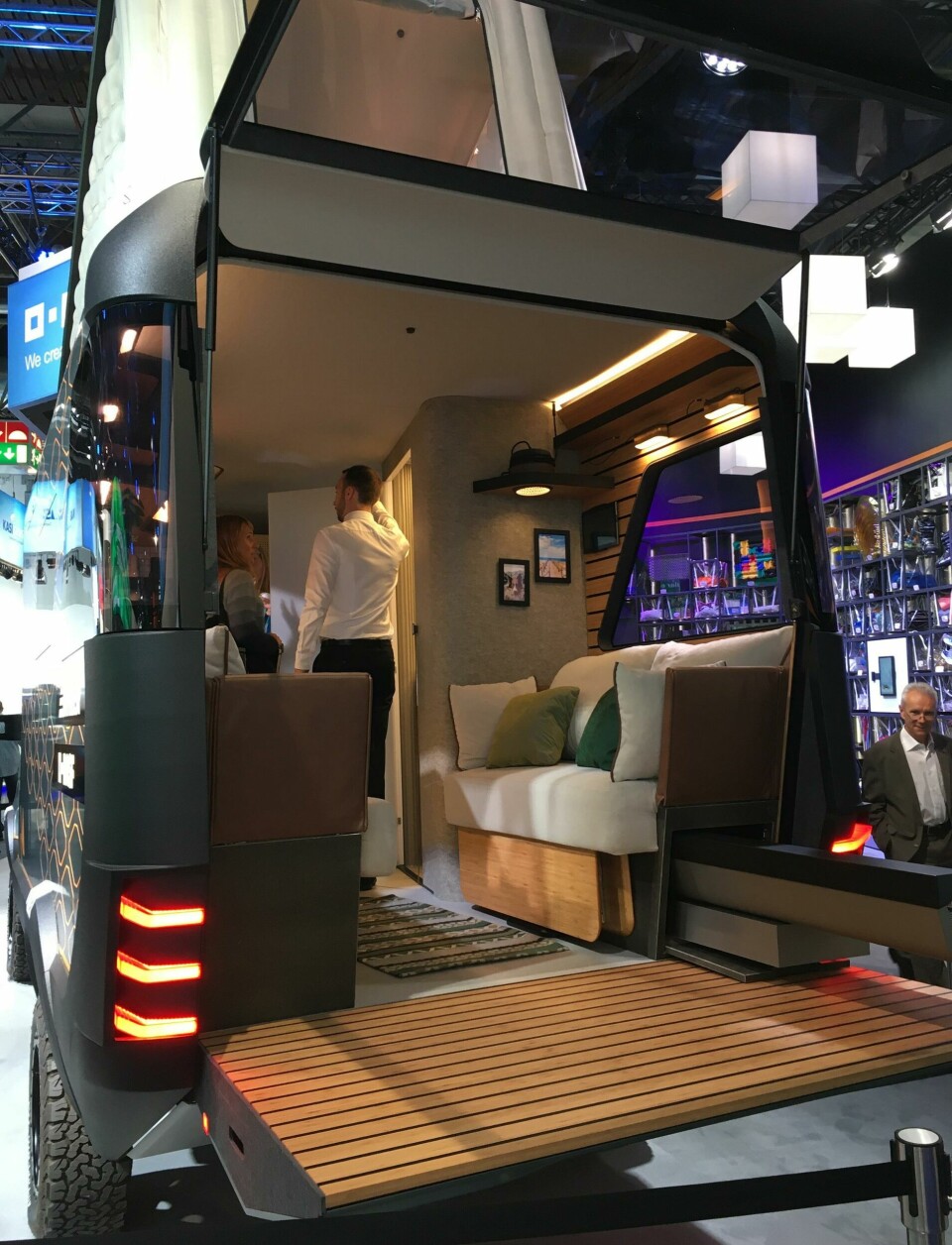 Maeizo features again behind the dash, as well as on the super-slim, foldable table, while the strong but lightweight underlying materials allow for marble flooring. “You can have a real stone material, just a very thin layer: you have the surface properties and the quality, but you don’t need big [thick] tiles,” said Helmig. “It’s such a thin layer, you can also illuminate it.” The polycarbonates and films continue on the glove box cover, vents and touchpads, and polyurethane foam is a sound-canceller in the ‘privacy hood’ that lowers over the rear seats. “It’s all about the motor functionalities and light, the ambient lighting, movement of the seats, atmosphere and privacy – all that is enabled by our materials,” Helmig concluded. “It’s giving design flexibility but is sturdy and lightweight at the same time.”