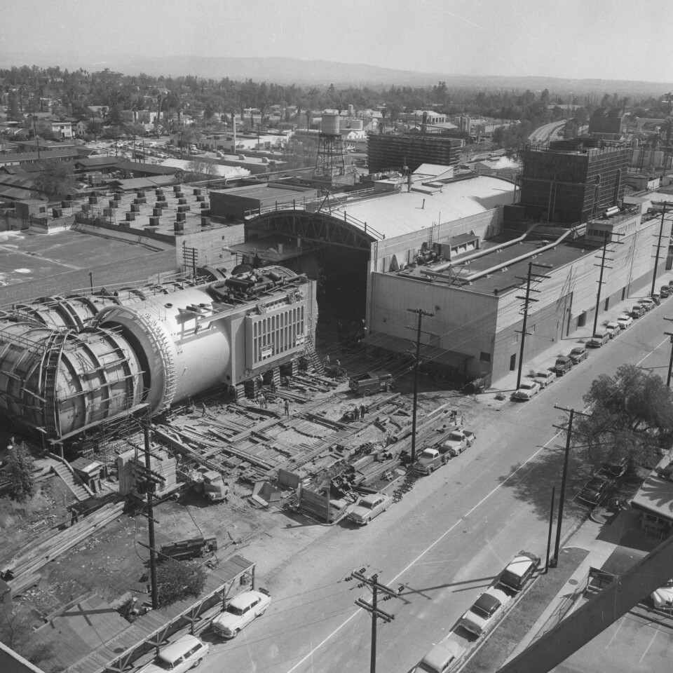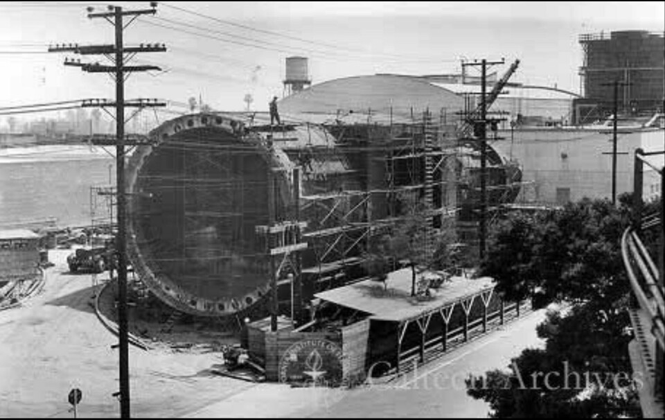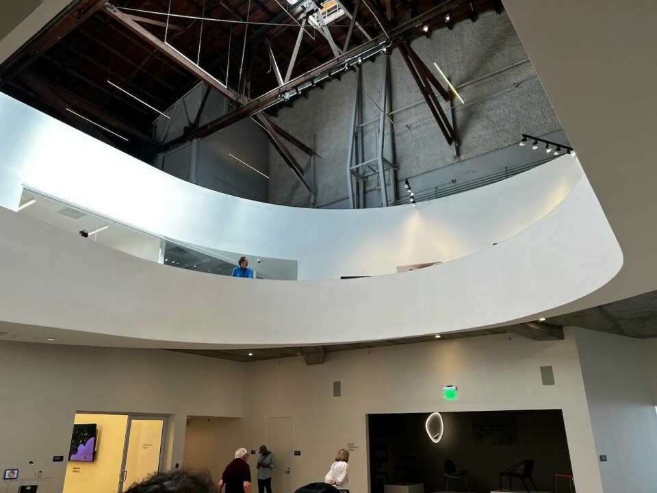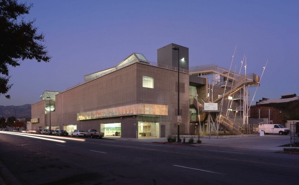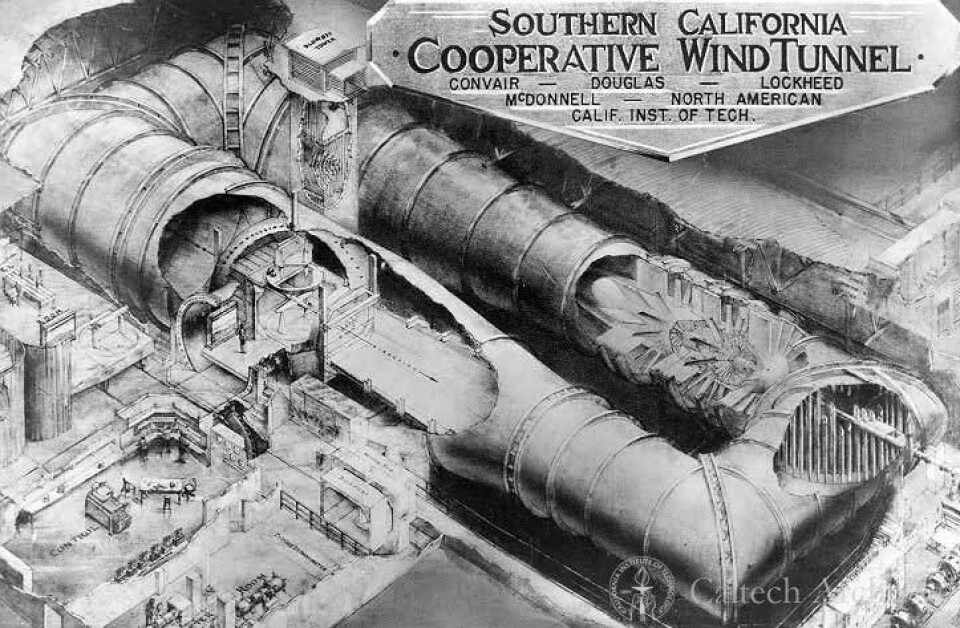 The wind tunnel has long since been replaced and located on the Cal Tech campus. The building’s shell was bought by philanthropist Peter Mullin two decades ago and used by ArtCenter for classrooms and a very large art gallery, after a dramatic renovation by Los Angeles architects Daly/Genik.